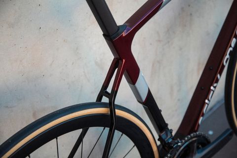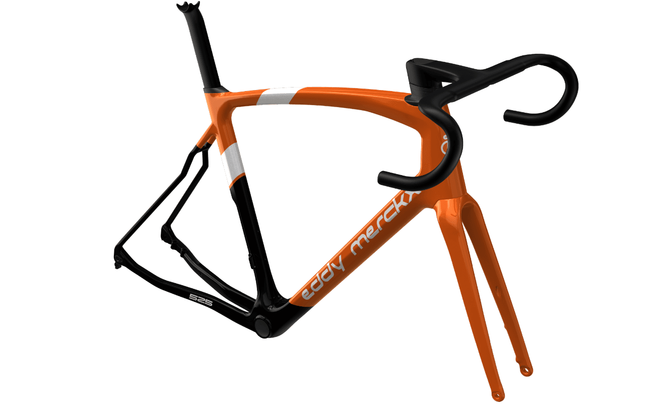 The distinctive s-curved seat tubes of Eddy Merckx improve comfort and compliance while ensuring optimal power transfer and stiffness. This seat tube design is characteristic of Eddy Merckx bikes, contributing to their unique look and feel.