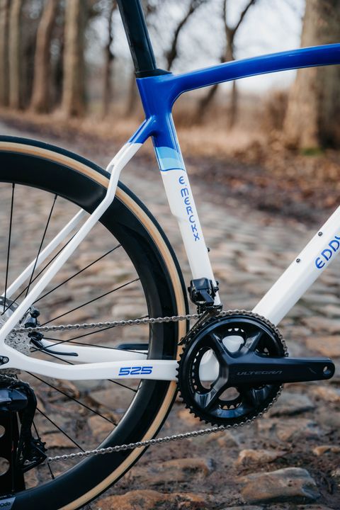 The distinctive s-curved seat tubes of Eddy Merckx improve comfort and compliance while ensuring optimal power transfer and stiffness. This seat tube design is characteristic of Eddy Merckx bikes, contributing to their unique look and feel.
