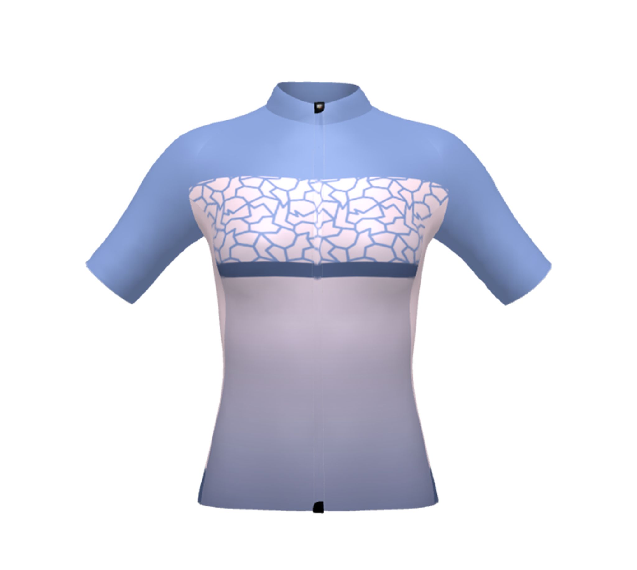 Anatomically preformed shirt (in cycling position) for women, with short sleeves (just above the elbow) in light, superelastic materials.