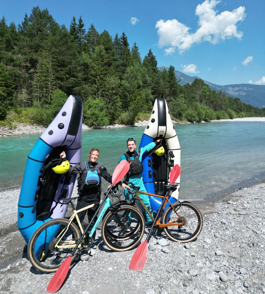 Drie jaar geleden zetten Karel Toch en Jana Raman hun eerste stappen in het bikepacken. Vandaag zijn ze ervaren avonturiers, die steeds op zoek gaan naar nieuwe prikkels. In de constante zoektocht naar nieuwe uitdagingen ontdekten ze recent het bikeraften. Maar hoe komt een mens daarbij uit? Jana glimlacht: “We zijn allebei seizoenswerkers en zoeken graag avontuurlijk gidswerk op. Twee jaar geleden viel ik in als gids voor een packraftreis van twee weken. De combinatie van wandelen en raften sprak me enorm aan, vooral omdat de beleving op het water zo anders is dan op het land.” Iets later overtuigde Jana haar partner Karel, en samen begonnen ze aan hun eerste gezamenlijke packraft-avontuur als gidsen voor Packrafttravel. Deze zomer waagden ze zich aan iets nieuws: bikeraften, de verrassende mix van fietsen en raften.