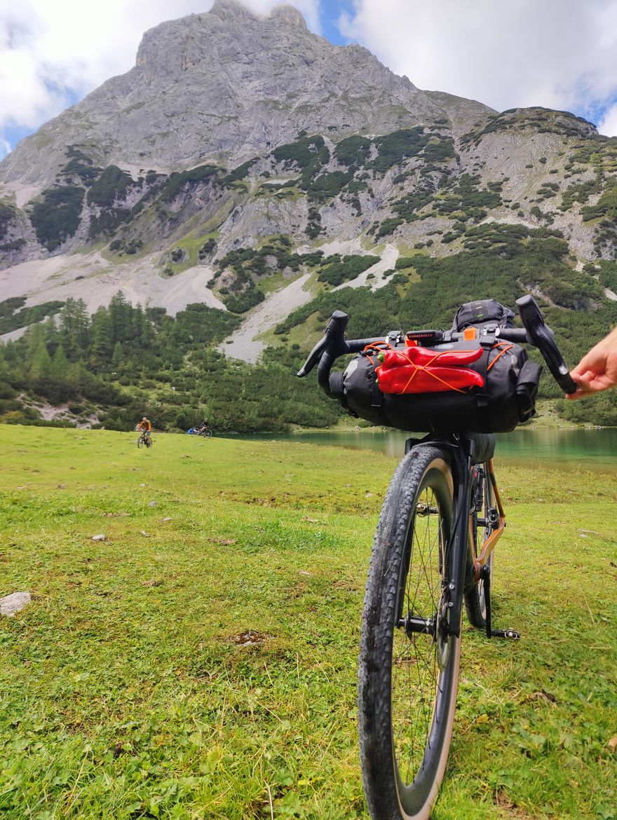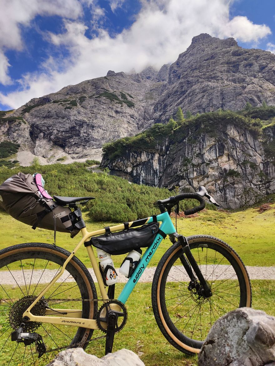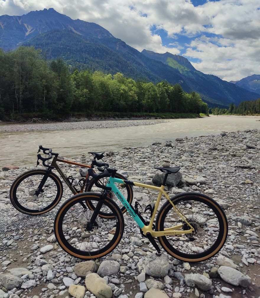 Drie weekenden werden met stip aangeduid. De eerste twee weekends draaiden helemaal om bikepacken, met de Eddy Merckx Strasbourg als trouwe compagnon. “Dankzij de geveerde voorvork en het brede stuur bood hij uitzonderlijk veel comfort. Perfect voor lange dagen in het zadel” aldus Karel. Elke dag reden ze een kleine 100 kilometer op de planning zodat er ruimte bleef voor ontspanning. De bestemming was Kleinwalsertal in Duitsland, een plek vol jeugdherinneringen voor Karel die hij maar al te graag deelde met Jana. Tijdens het tweede weekend trokken ze naar de Zugspitze Arena, aan de voet van de hoogste berg van Zuid-Duitsland. De perfecte omgeving om hun bikepacking skills een laatste keer te finetunen en zich klaar te stomen voor hun allereerste bikeraft-avontuur.